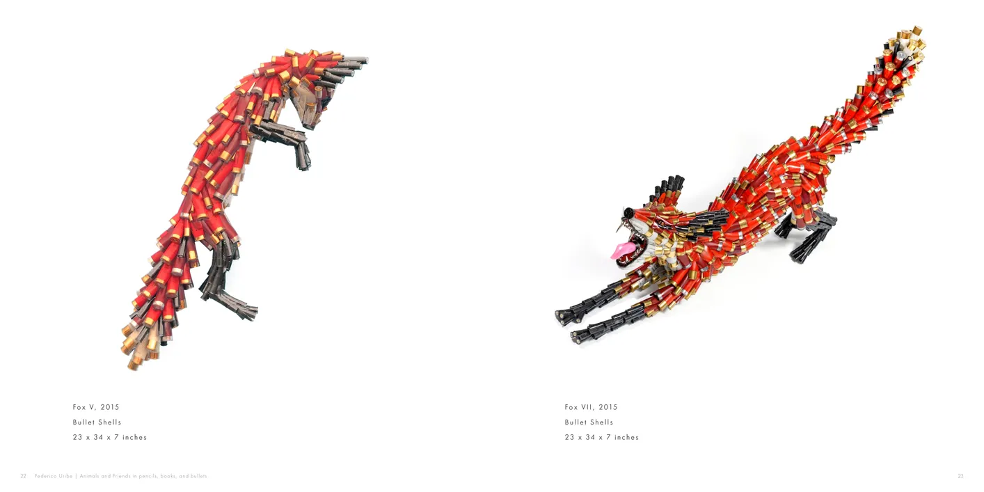 - Federico Uribe: Animals and Friends in Pencils, Books, and Bullets exhibition catalog, pages 22-23