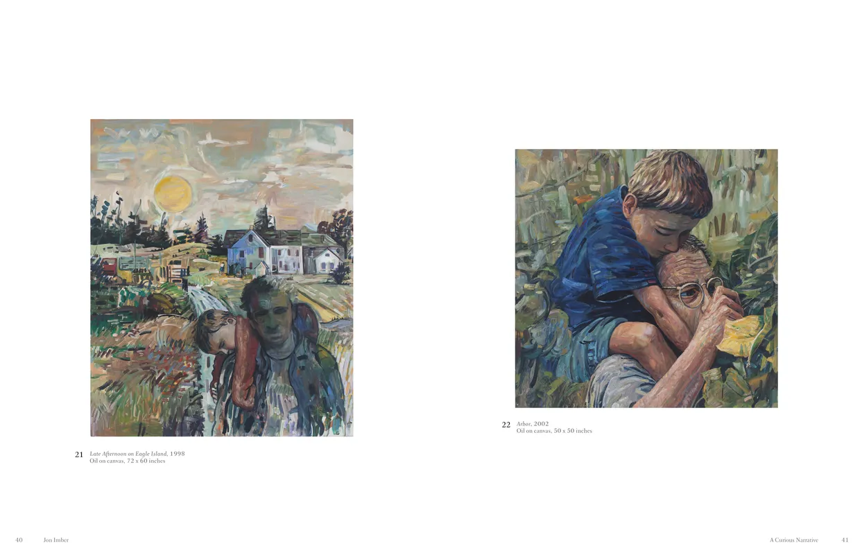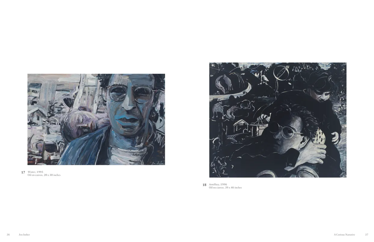 The plates section followed a more classical fine-arts structure, with clean spreads, paired works, and restrained typography. A full-spread cover image was selected for its emotional resonance and compositional strength, providing an immediate and immersive entry point into Imber’s world.